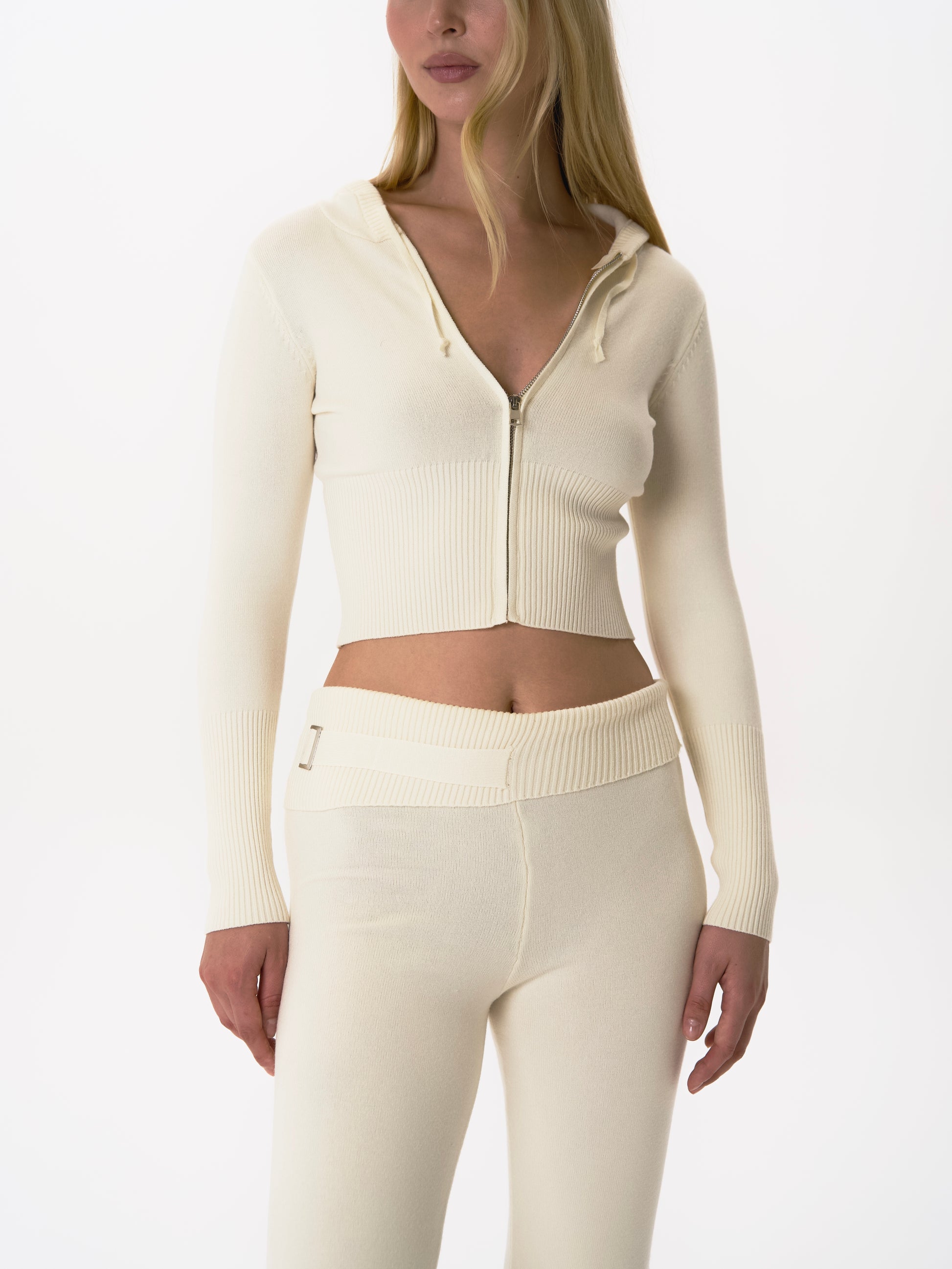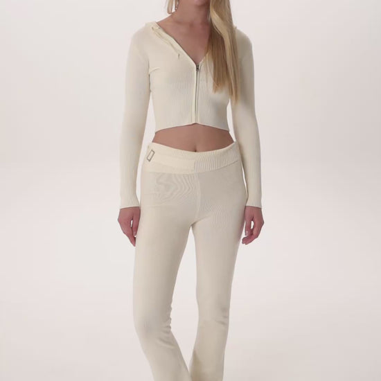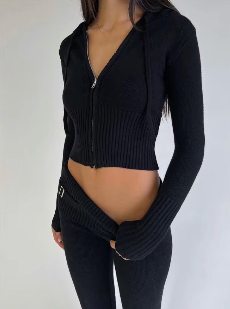 Wrap yourself in the sweetness of style and comfort with our "Zima" set. This two-piece ensemble features a cropped, zip-up hoodie with a snug yet breathable ribbed texture, paired with matching low-waisted pants that sit effortlessly on the hips. The pants are accented with a belt-like waistband and a chic buckle detail, adding a touch of retro charm to this modern look. Its dreamy pink hue evokes playful sophistication, making it the perfect blend of loungewear and casual chic.