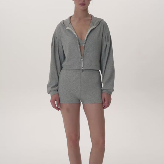 Featuring a cozy bralette, high-waisted shorts, and a cropped zip-up hoodie, this matching set offers a sleek, structured fit with a soft, breathable texture. Perfect for casual wear, at-home relaxation, or street-style layering, this versatile set blends chic minimalism with elevated coziness ⚡️